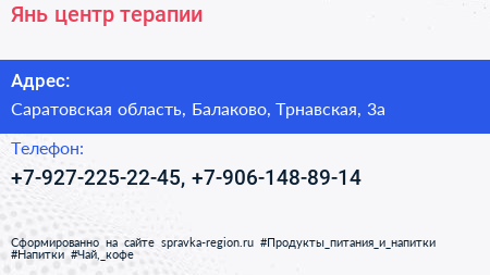 Янь, центр терапии по адресу Саратовская область, Балаково, Трнавская, 3а в дальнейшем Организация, размещена в следующих категориях: