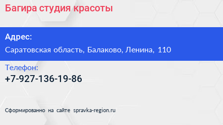 Багира, студия красоты по адресу Саратовская область, Балаково, Ленина, 110 в дальнейшем Организация, размещена в следующих категориях: