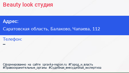 Beauty look, студия по адресу Саратовская область, Балаково, Чапаева, 112 в дальнейшем Организация, размещена в следующих категориях: