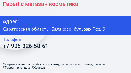 Faberlic, магазин косметики по адресу Саратовская область, Балаково, бульвар Роз, 9 в дальнейшем Организация, размещена в следующих категориях: