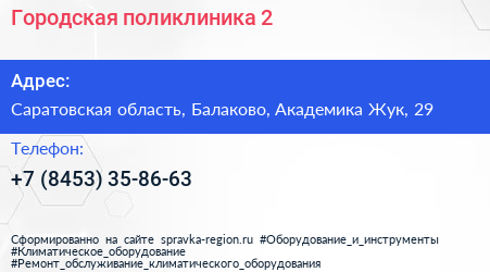 Городская поликлиника №2 по адресу Саратовская область, Балаково, Академика Жук, 29 в дальнейшем Организация, размещена в следующих категориях: