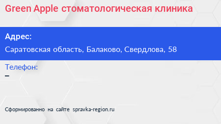 Green Apple, стоматологическая клиника по адресу Саратовская область, Балаково, Свердлова, 58 в дальнейшем Организация, размещена в следующих категориях: