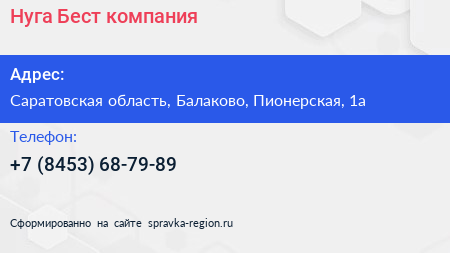 Нуга Бест, компания по адресу Саратовская область, Балаково, Пионерская, 1а в дальнейшем Организация, размещена в следующих категориях: