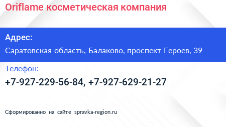 Oriflame, косметическая компания по адресу Саратовская область, Балаково, проспект Героев, 39 в дальнейшем Организация, размещена в следующих категориях: