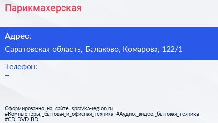 Парикмахерская по адресу Саратовская область, Балаково, Комарова, 122/1 в дальнейшем Организация, размещена в следующих категориях: