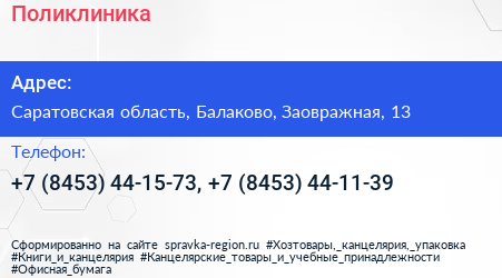 Поликлиника по адресу Саратовская область, Балаково, Заовражная, 13 в дальнейшем Организация, размещена в следующих категориях: