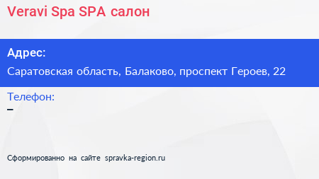 Veravi.Spa, SPA-салон по адресу Саратовская область, Балаково, проспект Героев, 22 в дальнейшем Организация, размещена в следующих категориях: