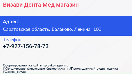Визави Дента Мед, магазин по адресу Саратовская область, Балаково, Ленина, 100 в дальнейшем Организация, размещена в следующих категориях: