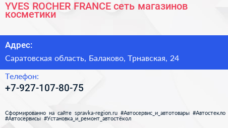YVES ROCHER FRANCE, сеть магазинов косметики по адресу Саратовская область, Балаково, Трнавская, 24 в дальнейшем Организация, размещена в следующих категориях: