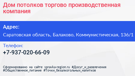 Дом потолков, торгово-производственная компания по адресу Саратовская область, Балаково, Коммунистическая, 136/1 в дальнейшем Организация, размещена в следующих категориях: