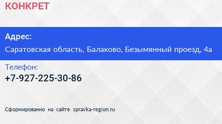 КОНКРЕТ по адресу Саратовская область, Балаково, Безымянный проезд, 4а в дальнейшем Организация, размещена в следующих категориях: