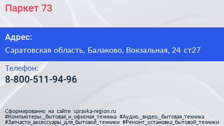 Паркет 73 по адресу Саратовская область, Балаково, Вокзальная, 24 ст27 в дальнейшем Организация, размещена в следующих категориях:
