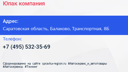Юпак, компания по адресу Саратовская область, Балаково, Транспортная, 8Б в дальнейшем Организация, размещена в следующих категориях: