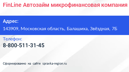 FinLine-Автозайм, микрофинансовая компания по адресу 143909, Московская область, Балашиха, Звёздная, 7Б в дальнейшем Организация, размещена в следующих категориях: