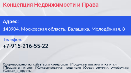 Концепция Недвижимости и Права по адресу 143904, Московская область, Балашиха, Молодёжная, 8 в дальнейшем Организация, размещена в следующих категориях: