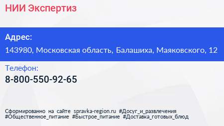 НИИ Экспертиз по адресу 143980, Московская область, Балашиха, Маяковского, 12 в дальнейшем Организация, размещена в следующих категориях:
