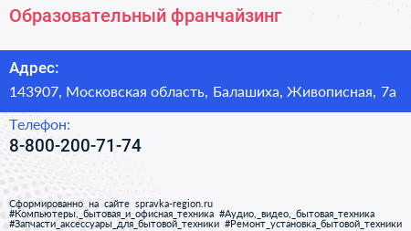 Образовательный франчайзинг по адресу 143907, Московская область, Балашиха, Живописная, 7а в дальнейшем Организация, размещена в следующих категориях: