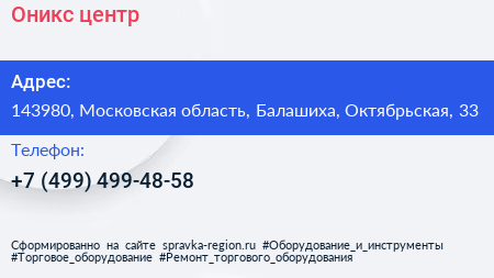 Оникс, центр по адресу 143980, Московская область, Балашиха, Октябрьская, 33 в дальнейшем Организация, размещена в следующих категориях: