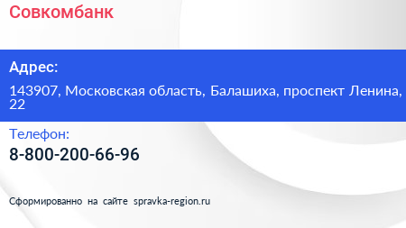 Совкомбанк по адресу 143907, Московская область, Балашиха, проспект Ленина, 22 в дальнейшем Организация, размещена в следующих категориях: