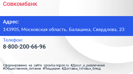 Совкомбанк по адресу 143905, Московская область, Балашиха, Свердлова, 23 в дальнейшем Организация, размещена в следующих категориях:
