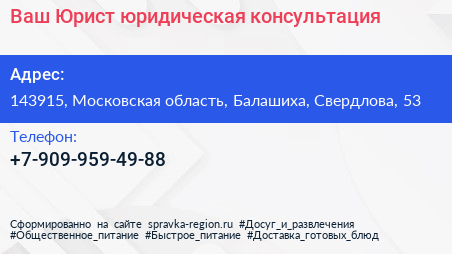 Ваш Юрист, юридическая консультация по адресу 143915, Московская область, Балашиха, Свердлова, 53 в дальнейшем Организация, размещена в следующих категориях: