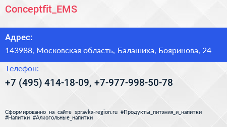 Conceptfit_EMS по адресу 143988, Московская область, Балашиха, Бояринова, 24 в дальнейшем Организация, размещена в следующих категориях: