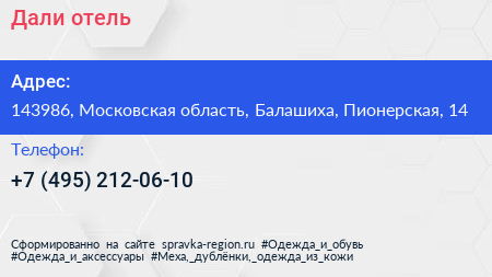 Дали, отель по адресу 143986, Московская область, Балашиха, Пионерская, 14 в дальнейшем Организация, размещена в следующих категориях: