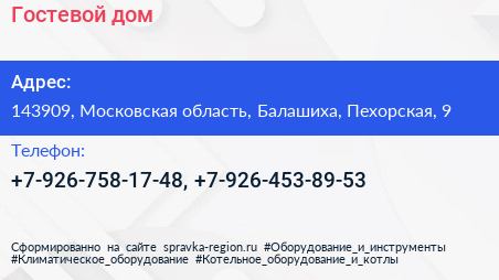 Гостевой дом по адресу 143909, Московская область, Балашиха, Пехорская, 9 в дальнейшем Организация, размещена в следующих категориях: