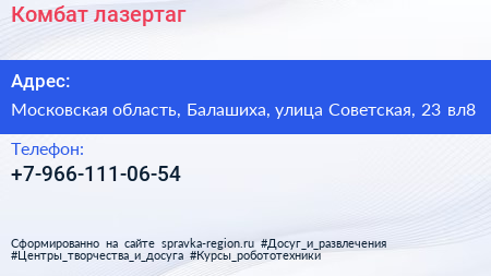 Комбат, лазертаг по адресу Московская область, Балашиха, улица Советская, 23 вл8 в дальнейшем Организация, размещена в следующих категориях: