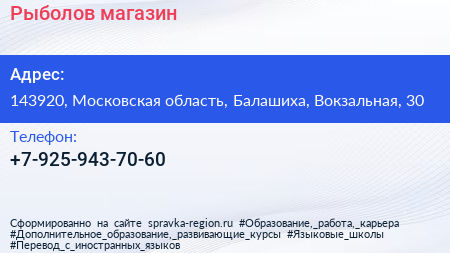 Рыболов, магазин по адресу 143920, Московская область, Балашиха, Вокзальная, 30 в дальнейшем Организация, размещена в следующих категориях: