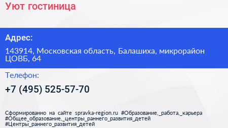 Уют, гостиница по адресу 143914, Московская область, Балашиха, микрорайон ЦОВБ, 64 в дальнейшем Организация, размещена в следующих категориях: