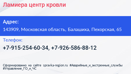 Ламиера, центр кровли по адресу 143909, Московская область, Балашиха, Пехорская, 65 в дальнейшем Организация, размещена в следующих категориях: