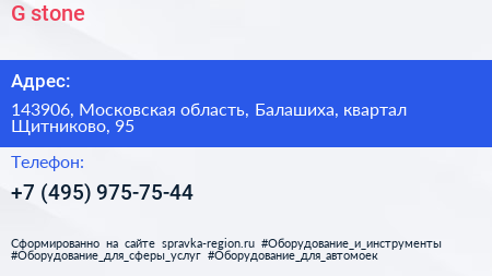 G-stone по адресу 143906, Московская область, Балашиха, квартал Щитниково, 95 в дальнейшем Организация, размещена в следующих категориях: