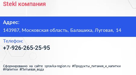 Stekl, компания по адресу 143987, Московская область, Балашиха, Луговая, 14 в дальнейшем Организация, размещена в следующих категориях:
