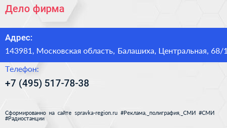 Дело, фирма по адресу 143981, Московская область, Балашиха, Центральная, 68/1 в дальнейшем Организация, размещена в следующих категориях: