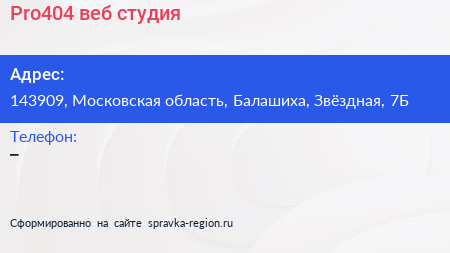 Pro404, веб-студия по адресу 143909, Московская область, Балашиха, Звёздная, 7Б в дальнейшем Организация, размещена в следующих категориях: