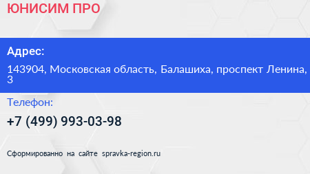 ЮНИСИМ ПРО по адресу 143904, Московская область, Балашиха, проспект Ленина, 3 в дальнейшем Организация, размещена в следующих категориях: