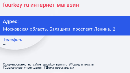 fourkey.ru, интернет-магазин по адресу Московская область, Балашиха, проспект Ленина, 2 в дальнейшем Организация, размещена в следующих категориях: