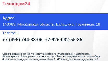 Технодом24 по адресу 143983, Московская область, Балашиха, Граничная, 18 в дальнейшем Организация, размещена в следующих категориях: