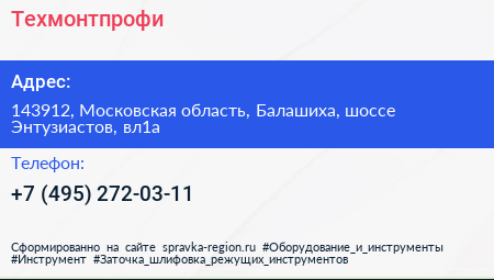 Техмонтпрофи по адресу 143912, Московская область, Балашиха, шоссе Энтузиастов, вл1а в дальнейшем Организация, размещена в следующих категориях: