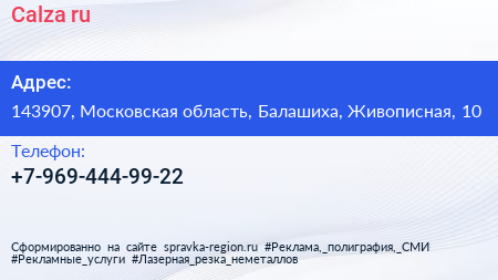 Calza.ru по адресу 143907, Московская область, Балашиха, Живописная, 10 в дальнейшем Организация, размещена в следующих категориях: