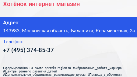 Хотёнок, интернет-магазин по адресу 143983, Московская область, Балашиха, Керамическая, 2а в дальнейшем Организация, размещена в следующих категориях: