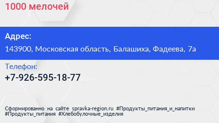 1000 мелочей по адресу 143900, Московская область, Балашиха, Фадеева, 7а в дальнейшем Организация, размещена в следующих категориях: