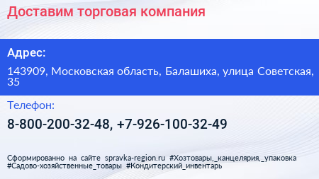 Доставим!, торговая компания по адресу 143909, Московская область, Балашиха, улица Советская, 35 в дальнейшем Организация, размещена в следующих категориях: