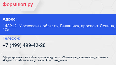 Формшоп.ру по адресу 143912, Московская область, Балашиха, проспект Ленина, 10а в дальнейшем Организация, размещена в следующих категориях: