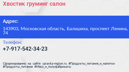 Хвостик, груминг-салон по адресу 143903, Московская область, Балашиха, проспект Ленина, 74 в дальнейшем Организация, размещена в следующих категориях: