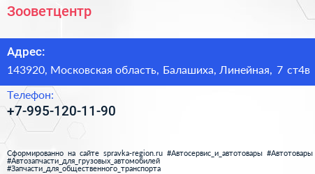 Зооветцентр по адресу 143920, Московская область, Балашиха, Линейная, 7 ст4в в дальнейшем Организация, размещена в следующих категориях: