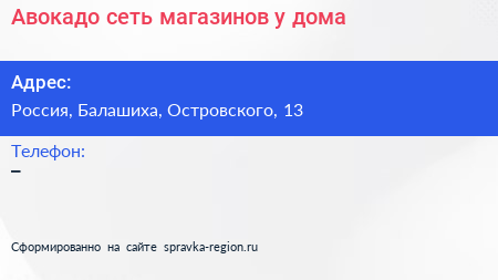 Авокадо, сеть магазинов у дома по адресу Продукты, 13, улица Островского, Новокрасково, Коренёво, Красково, городской округ Люберцы, Московская область, Центральный федеральный округ, 140050, Россия в дальнейшем Организация, размещена в следующих категориях: