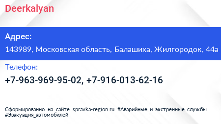 Deerkalyan по адресу 143989, Московская область, Балашиха, Жилгородок, 44а в дальнейшем Организация, размещена в следующих категориях: