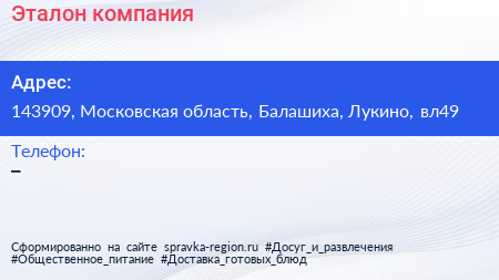 Эталон, компания по адресу 143909, Московская область, Балашиха, Лукино, вл49 в дальнейшем Организация, размещена в следующих категориях: